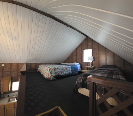 Cabins - 1 queen bed downstairs. 1 queen and 1 twin in the open loft. Kitchenette, Directv dishes and linens. Four of the Cabins have a screened in porch.